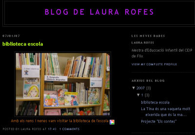c. O el que descriu una experiència didàctica a través d'una seqüència d'imatges El de la Laura Rofes, també del CEIP Enric Grau i Fontserè, descru experiències d'aula. Mireu-lo a http://blogdelaurarofes.blogspot.com/. El fotobloc es veu al Projecte "Els contes".