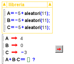 Llavors hom pensa en les llibreries. Per una banda, permetrien amagar a l'alumna o l'alumne a qui li plantegeu el càlcul el codi aleatori de la funció que pot ser que emboliqui més que no pas ajudi. I per l'altra, es conservaria llavors el valor de A, B, C?