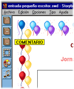 Un altre programa del qual també podeu fer servir els contorns és El pequeño escritor. Es tracta d'un programa que permet crear històries a partir d'uns escenaris. Aquest programa es troba en format CD-ROM i s'ha lliurat als centres públics de primària amb la dotació Argo. En aquest cas, el fareu servir per fer una entrada a un esdeveniment especial, com pot ser l'exposició de treballs dins el marc d'una setmana cultural.