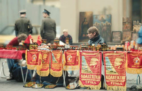 | A la segona, la del noi jove que ven records de la Rússia tradicional o símbols del passat comunista, s'intenta que el seu cap sigui una matrioixka més. Evidentment la forma com ha estat retallada la imatge pretén intencionadament reforçar la idea d'una renglera de nines russes que acaba en la cara del jove. | |||||||||||||||||||||||||