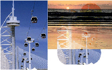 que inclou una imatge de l'Expo de Lisboa i una altra de la platja de