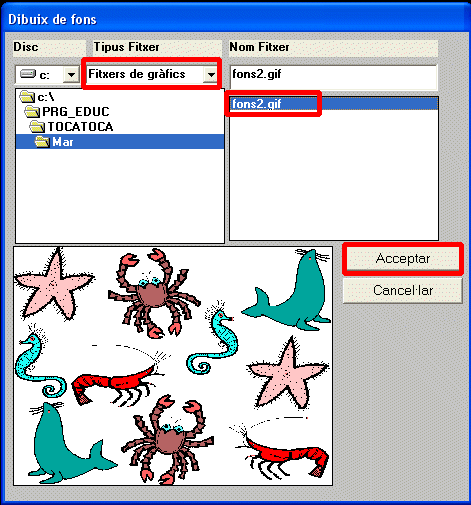 - Escolliu el fitxer fons2.gif, el qual teniu a la carpeta de