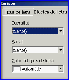 Caràcter, i ens apareix una pantalla amb diverses pestanyes.