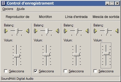 La situació normal és que la casella Mut només es trobi marcada al camp Micròfon.
