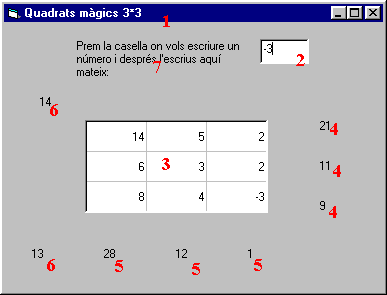Quan acabeu de preparar el programa podeu fer el següent quadrat màgic: ![]() Ha de quedar una cosa així: ![]() ExercicisNo n'hi ha. |
