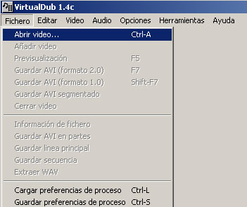 6.- Un cop configurades les opcions, accepteu a totes les finestres i comenceu la codificació tot anant a Fichero/Guardar Avi (formato 2.0). A la versió en anglès del programa no apareix aquesta diferenciació entre els formats avi 1.0 i 2.0.