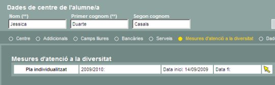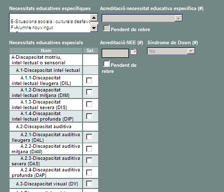 | Permet entrar i consultar la informació relativa a les necessitats educatives específiques i especials de l' alumne. Dades de currículum i Observacions | ||
