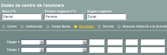 | El programa permet recollir les dades bancàries de l' alumne o dels seus responsables | ||