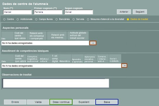 Assoliment de competències bàsiques i Observacions de trasllat |