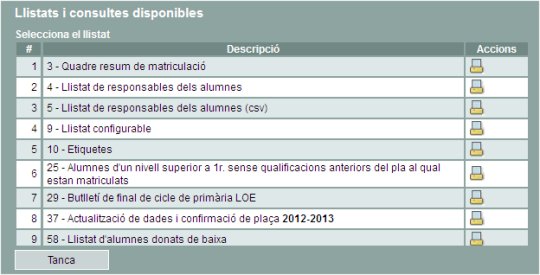 Relació de informes de llistat dels alumnes del centre |