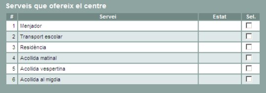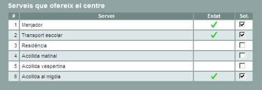 | En aquesta pantalla es presenten els possibles serveis que els centres poden ofertar: | |