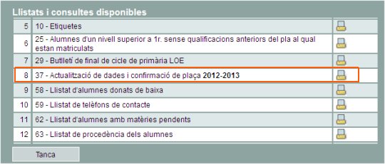 Gestió > Alumnes > Dades dels alumnes, botó Imprimeix |