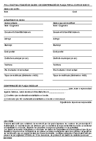Full de confirmació de plaça |