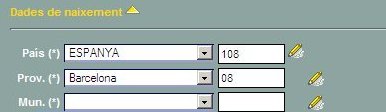 | Si l'alumne ha nascut fora de Catalunya caldrà realitzar la cerca del país corresponent, el camp província queda inactiu, i no s'emplenarà en aquest cas. | |