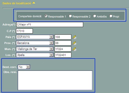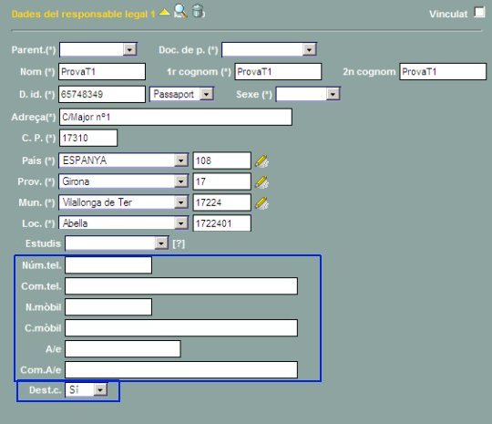 | En els apartats corresponents a les dades del responsable 1 i del responsable 2 de l'alumne s'han introduït les següents modificacions: | |
