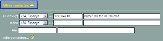 | Aquesta secció, de fet, no ha experimentat cap altre canvi que el del seu nom, ara bé, el fet d'haver introduït camps de contacte en els responsables legals de l'alumne canvia el sentit d'aquest apartat. | |