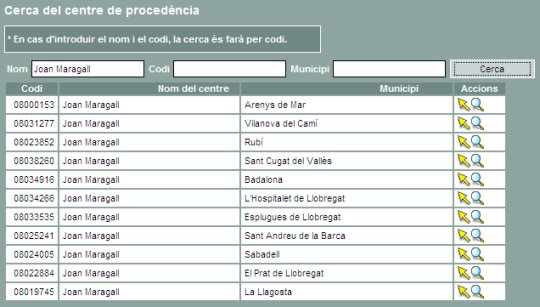 | A les dades corresponents al centre de procedència s'hi ha afegit el municipi, la qual cosa facilitarà la identificació de centres amb el mateix nom. | |