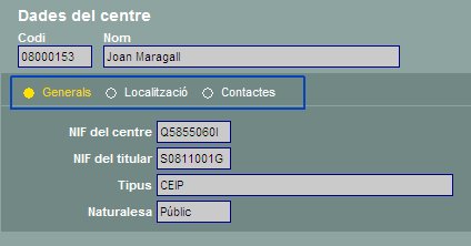 Consulta de les dades d'un centre |