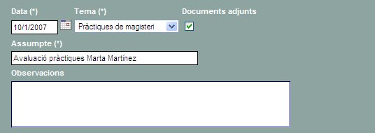 | Aquest darrer apartat permet enregistrar, si és necessari, la distribució que se'n faci del document, és a dir, a qui se n'hi facilita una còpia i la data en què s'efectua. | ||||||||||||