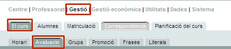 | La gestió de les avaluacions també la pot fer el tutor/a del grup si l'equip directiu així ho ha determinat a Sistema > Configuració > Paràmetres de configuració, seleccionant el paràmetre Permetre la gestió de l'estat de les avaluacions al tutor. | |