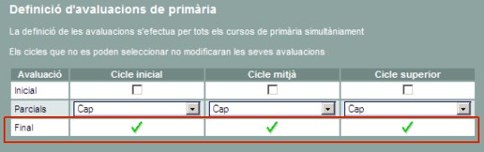 Si no s'han fet les avaluacions parcials amb Saga cal indicar que es realitzarà, únicament l'avaluació final de cicle: |