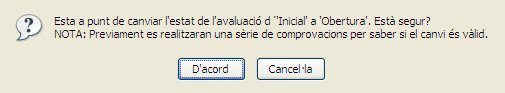 Si s'ha d'activar la darrera avaluació parcial del curs, és imprescindible activar-la abans de posar l'avaluació final en obertura. |