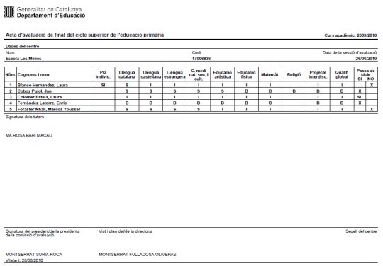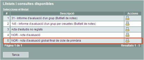 | Observeu que les actes s'obtenen per cicle, independentment del nombre de grups que hi ha al nivell. | |
