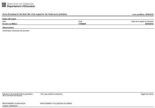 | A la finestra emergent cal cercar el model de l'acta de final de cicle de primària. | |