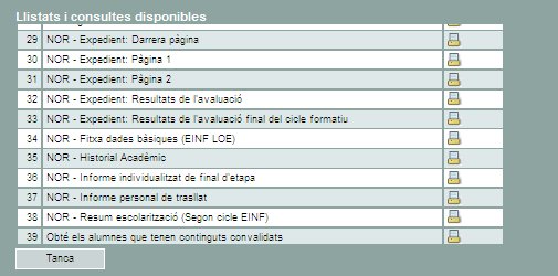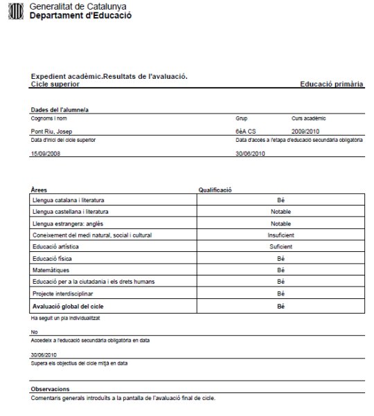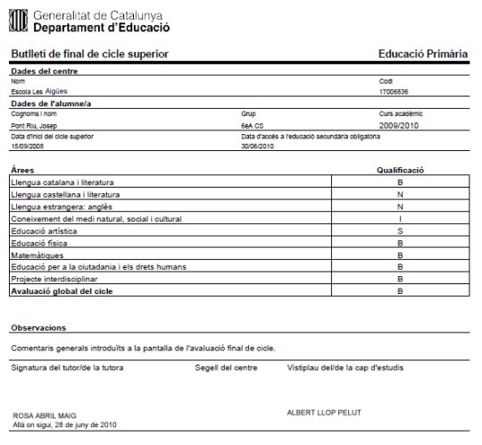 | A part de l'acta de l'avaluació final de cicle que s'ha tractat a la pràctica anterior, hi ha altres documents que s'han d'imprimir per a cada alumne. | |