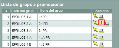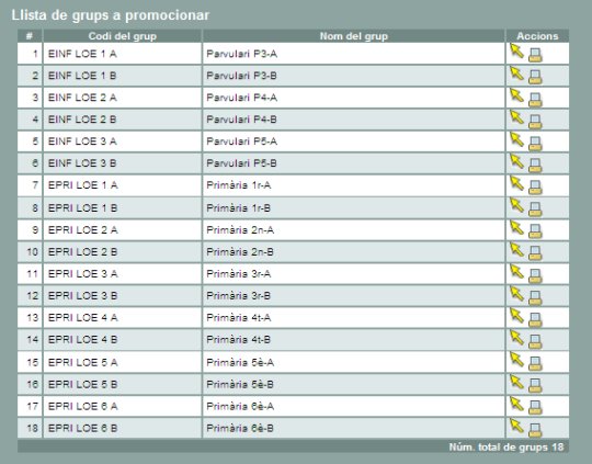 | Un cop acabat el procés, es torna finestra de la llista de grups classe a promocionar: | |