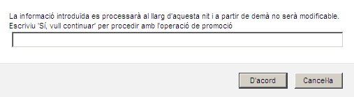 | Cliqueu al botó [D'acord] i es mostrarà la següent finestra per confirmar l'actuació: | |
