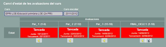 | Observeu que l'avaluació final de cicle en estat Tancada, es pot tornar a passar a l'estat Junta. | |