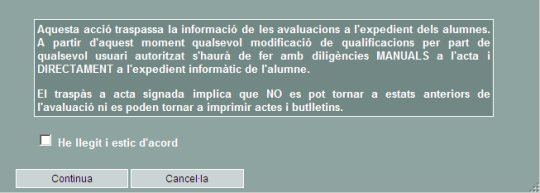 | Al clicar aquest botó es mostrarà el següent avís: | |
