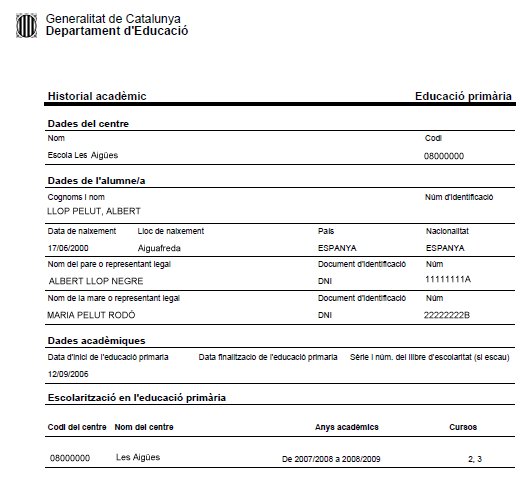 | Aquests documents també estan disponibles des de Gestió > Alumnes > Històric d'alumnes | |