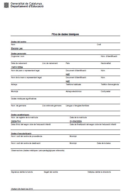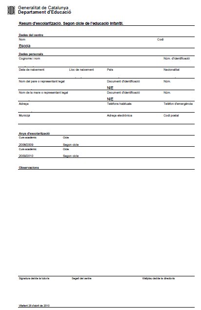 La normativa vigent únicament determina el format de dos documents dels alumnes d'educació infantil:
