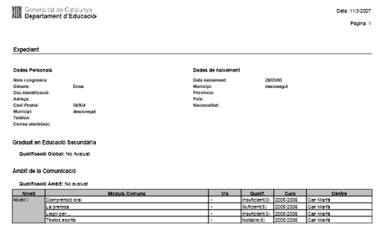 Document oficial que recull les dades de l'expedient de l'alumne. Hi han de moment tres models: