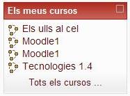 Moodle s'organitza per cursos; cada curs conté una sèrie d'informacions i funcionalitats que, per ordenar-les i facilitar-ne la navegació, estan agrupades sota uns titulars: són els blocs.