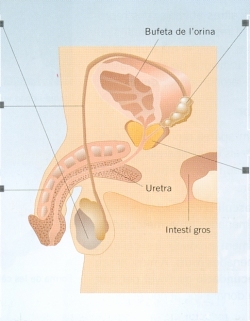 Prostata:és una glàndula que produeix el líquid prostàtic. El líquid prostàtic és abocat als conductes deferents. La barreja formada pels espermatozoides, el líquid seminal i el líquid prostàtic constitueix el semen.