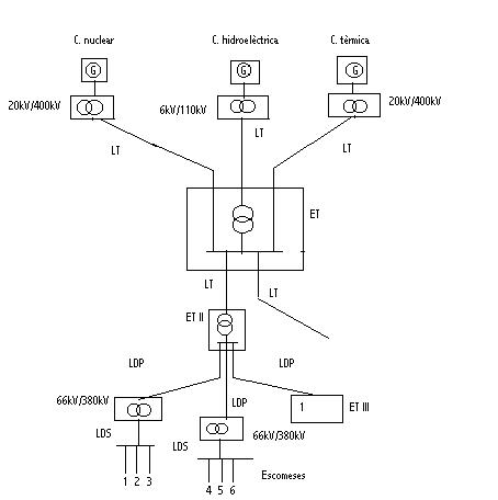 Les LDP subministren energia elèctrica directament als consumidors de gran potència ( 1) o a les línies de distribució secundàries ( LDS ) per mitjà de les ET III. Les LDS alimenten al consumidor.ACTIVITATS