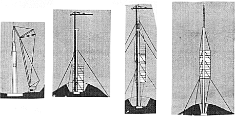 Una estructura metàl·lica de 13 plataformes (com un edifici de 23 pisos), es construeix al terra. Pesa 2.600 tones. S'hissa fins a 77 m d'altura. Es col·loquen els cables de sustentació. A la fi els eixos s'alcen des de l'interior del tub. L'extrem més alt de la torre està a 713 m sobre el nivell del mar.