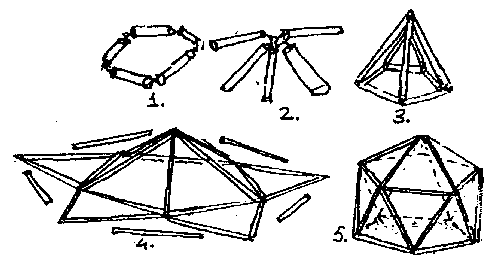Necessites: 25 canyes de refresc d'uns 20 cm, 50 trossos d'escombreta neteja-pipes de 4 cm, una brúixola, instruments de dibuix, transportador d'angles i dos trossos de fil.