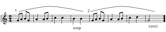 - Analitzeu aquesta cançó. Indiqueu les quatre parts en què es pot subdividir, i si els finals de cada part són suspensius o conclusius. La trobareu amb el nom de fitxer ALEMANYA.