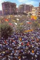 1975-1978. La transició democràtica Són anys d'una gran conflictivitat social. El moviment obrer, en plena crisi econòmica i laboral, lluita fermament pel lloc de treball i per aconseguir les llibertats. Alhora, enmig d'unes grans contradiccions internes, un sector reformista del règim busca l'evolució d'aquest i s'enfronta en un pols amb l'oposició democràtica, partidària del trencament amb la dictadura. Finalment, l'empenta del moviment obrer, la crisi interna del franquisme i la tensió entre reformistes i partidaris del trencament provoquen la descomposició del règim, que es veu obligat a legalitzar les organitzacions obreres i polítiques. Són convocades eleccions democràtiques el 15 de juny de 1977. Poc després, el 8 de desembre de 1978, és aprovada la Constitució, que és la carta magna que garanteix la democràcia a Espanya, les llibertats i un tipus d'estat descentralitzat: l'estat de les autonomies. |