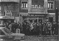 Treballadors de Laforsa protestant davant la seu del Banc de Madrid.