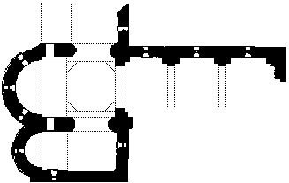 - Completa la planta de l'església i assenya-la-hi els elements que hi puguis reconèixer. Pren les mides exteriors de llargada dels murs i anota-les en el dibuix. (Un cop a classe, les podràs comparar amb els resultats de la fitxa 12.)