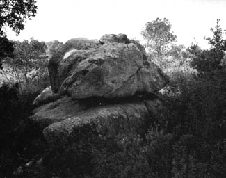 Es troba en el paratge conegut antigament com la Sureda d'en Massot i es va donar a conèixer l'any 1914 amb el nom de "Pedra oscil·lant". Es tracta d'una pedra oscil·lant de granit que presenta una gran cassoleta natural en la seva part superior. Partint d'aquest punt, i tot a l'entorn hi foren insculpits diversitat de signes, entre els quals cal destacar-ne 11 de cruciformes, 4 de circulars, 4 de rectilinis, 2 de serpentiformes, 2 d'antropomorfs estilitzats i d'altres d'indeterminats. Amida 3,80 m. de llarg per 3,30 m. d'ample i 1,50 m. de gruix. El monument es conserva en bon estat i mai no ha estat excavat científicament; per tant, no s'han trobat materials arqueològics. Fitxa de camp Dolmen del Quer Afumat ] |