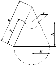 Ara queda igualar la longitud de la circumferència de la base a la qual s’anomenarà l i l’arc de la circumferència de radi g. S’aplica la fórmula del sector: ![]() substituint l per s’obté:![]() desenvolupant la fórmula es troba que: ![]() Aquest angle ens limitaria el sector circular que formaria les parets de la xemeneia. L’alçada d’aquesta ve determinada per la generatriu del tronc de con T trobada anteriorment; la part superior és un cercle de radi r i la base és un cercle de radi R. ![]() |