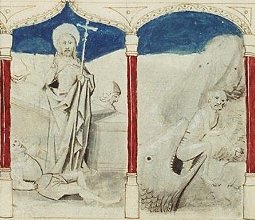 Se yuxtapone a la imagen del entierro de Cristo la de Jonás tragado por la ballena (izquierda), y a la de Cristo saliendo del sepulcro a los tres días de su muerte, la de Jonás saliendo del vientre del pez en la playa de Nínive (derecha).