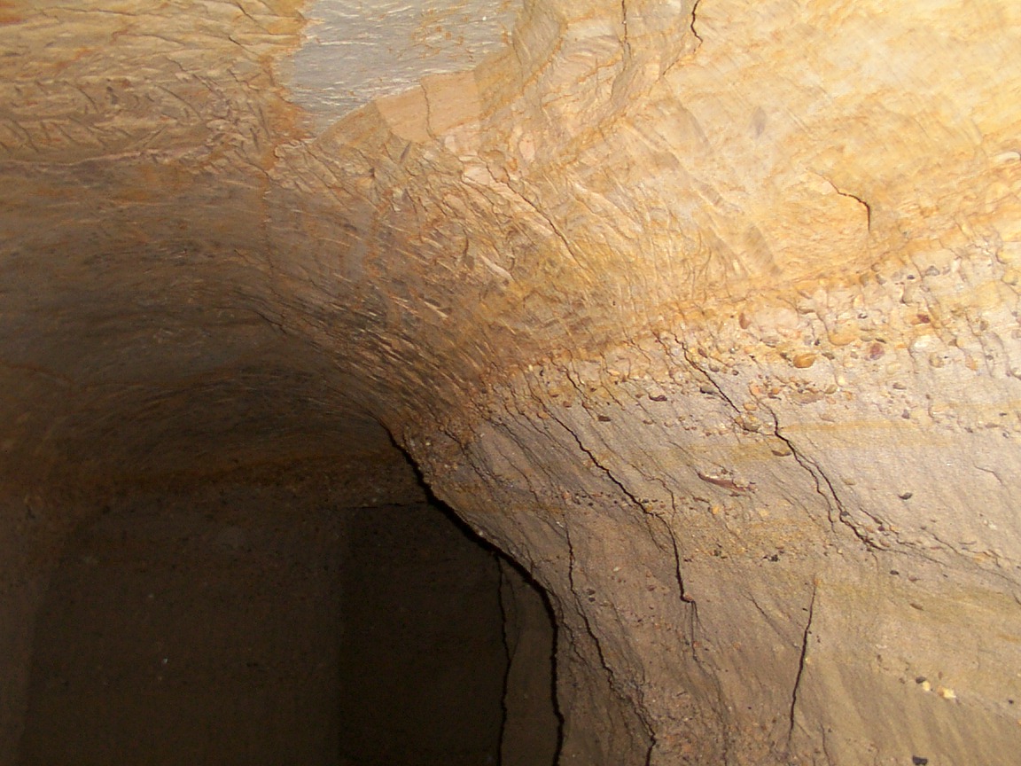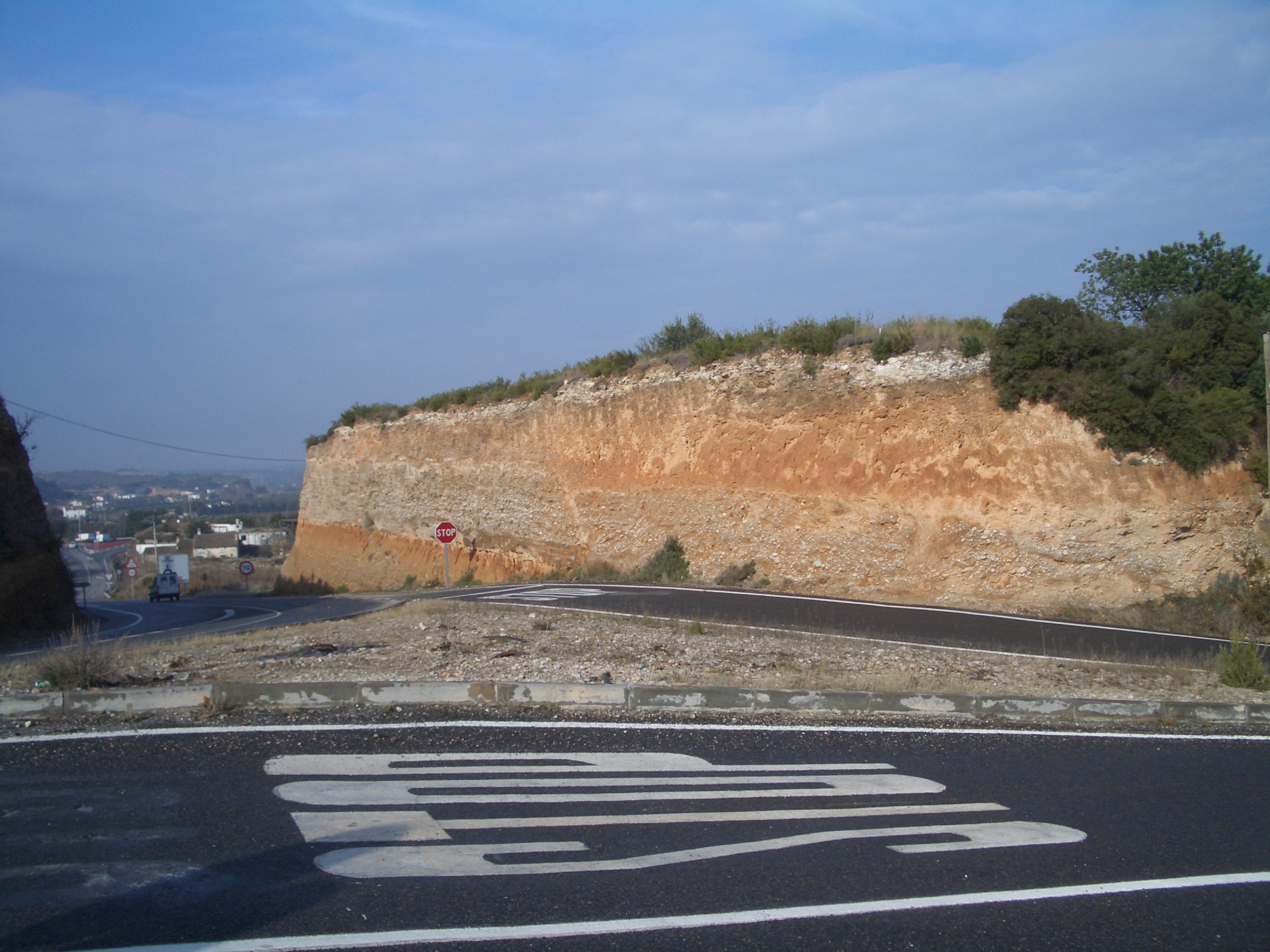 Formació de graves i arenes afectades per una falla. La crosta de taperot a sobre de tot,. Vinallop |