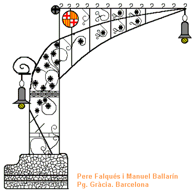 Els bancs, de trencadís blanc i amb formes arrodonides, serveixen de suport als grans fanals de sinuosa estructura. Aquests, de ferro forjat grana i daurat, prenen formes vegetals i de "cop de fuet". Formant un quart de cercle, els fanals sostenen globus de llum amb estructura de ferro. En la urbanització del Passeig de Gràcia van tenir un paper important els fanals-banc. Tenen una doble funció: com a banc i com a fanal. Els bancs, de ressonàncies gaudinianes, han confós sempre els barcelonins respecte a la paternitat de l'obra. Amb la reforma del Passeig en la dècada dels setanta, els fanals-banc van perdre protagonisme. Actualment, encara que restaurats i recuperats, són agredits per les proteccions de les rampes dels aparcaments i conviuen amb altres elements urbans del mateix passeig. |
